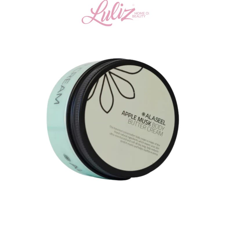 ALASEEL APPLE MUSK BODY BUTTER CREAM 100 ML 100% natural productGet rid of dryness and cracks in the body in the winter with body butter from Al-Aseel, as it consists of the most important moisturizing substancesCocoa butter, shea butter and coconut o