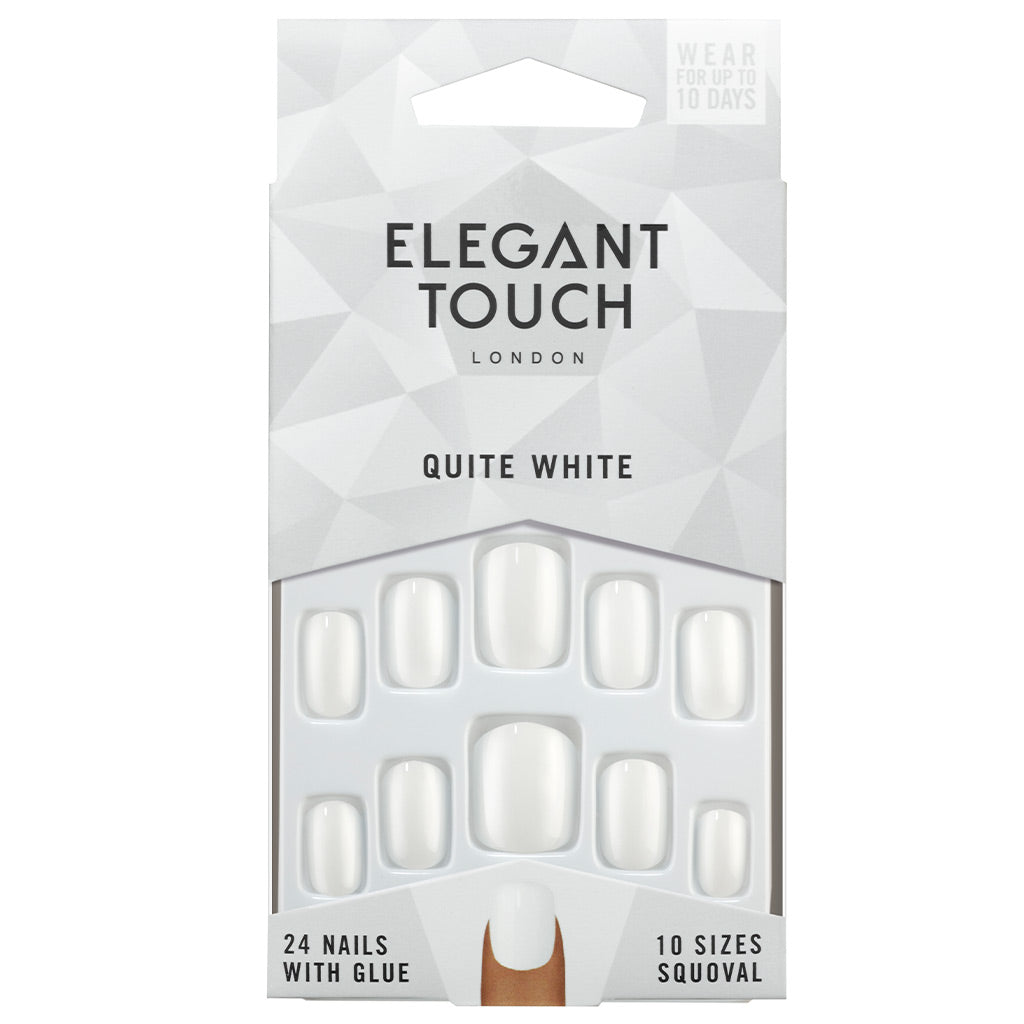 Get picture perfect, crisp, clean looking nails with Elegant Touch false nails in style Quite White. Quite White nails from Elegant Touch present modern squoval shaped nails in a short, classic length.