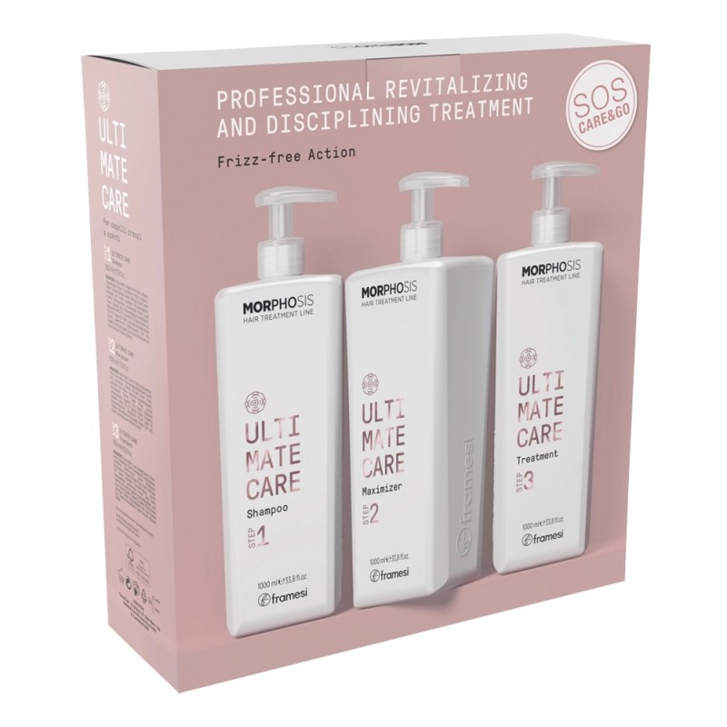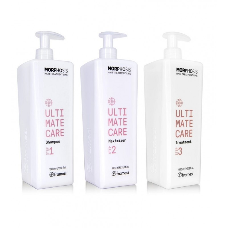 Framesi Morphosis Ultimate Care is a luxury kit that allows you to revitalize the hair fiber by recreating its natural hydration. This kit contains three highly professional hair care products including Framesi Morphosis Ultimate Care Shampoo STEP 1 500ml, an instant perfecting serum Framesi Morphosis Ultimate Care Maximizer STEP 2 500ml and an instant regenerating treatment Framesi Morphosis Ultimate Care Treatment 500ml. Your hair will be immediately hydrated and vital with unprecedented results.