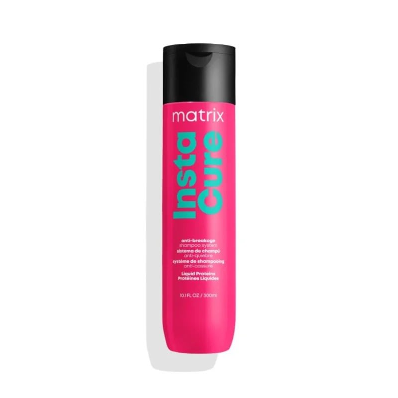 Matrix Instacure Anti-Breakage Shampoo, infused with liquid proteins, helps repair strength to reduce breakage in dry, brittle, and damaged hair. Anti-breakage system of shampoo, conditioner and spray fills porosity, creating an even and balanced surface.
