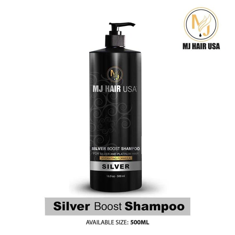 Silver Boost Shampoo : Banish brassy warm yellow tones between salon appointments and maintain your vibrant cool blond or silver color with MJ Silver boost shampoo. Shampoo adds pigment to the hair that neutralize while preventing color from fading. Keeps color bright and shimmery. Instructions Wet hair, apply MJ Hair Silver Boost Shampoo, lather for at least 30 seconds and rinse. Repeat if necessary. Alternate with MJ Hair Shampoo as necessary. Follow with MJ Hair conditioner and your favorite MJ Hair styling products. Sulfate free Paraben free