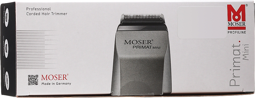 The MOSER PRIMAT MINI 1411-0052 corded trimmer in dark gray color was developed by the world’s leading manufacturer and supplier of hairdressing equipment for professional use by stylists in salons and barbershops, as well as for those who like to create clear edging lines at home.