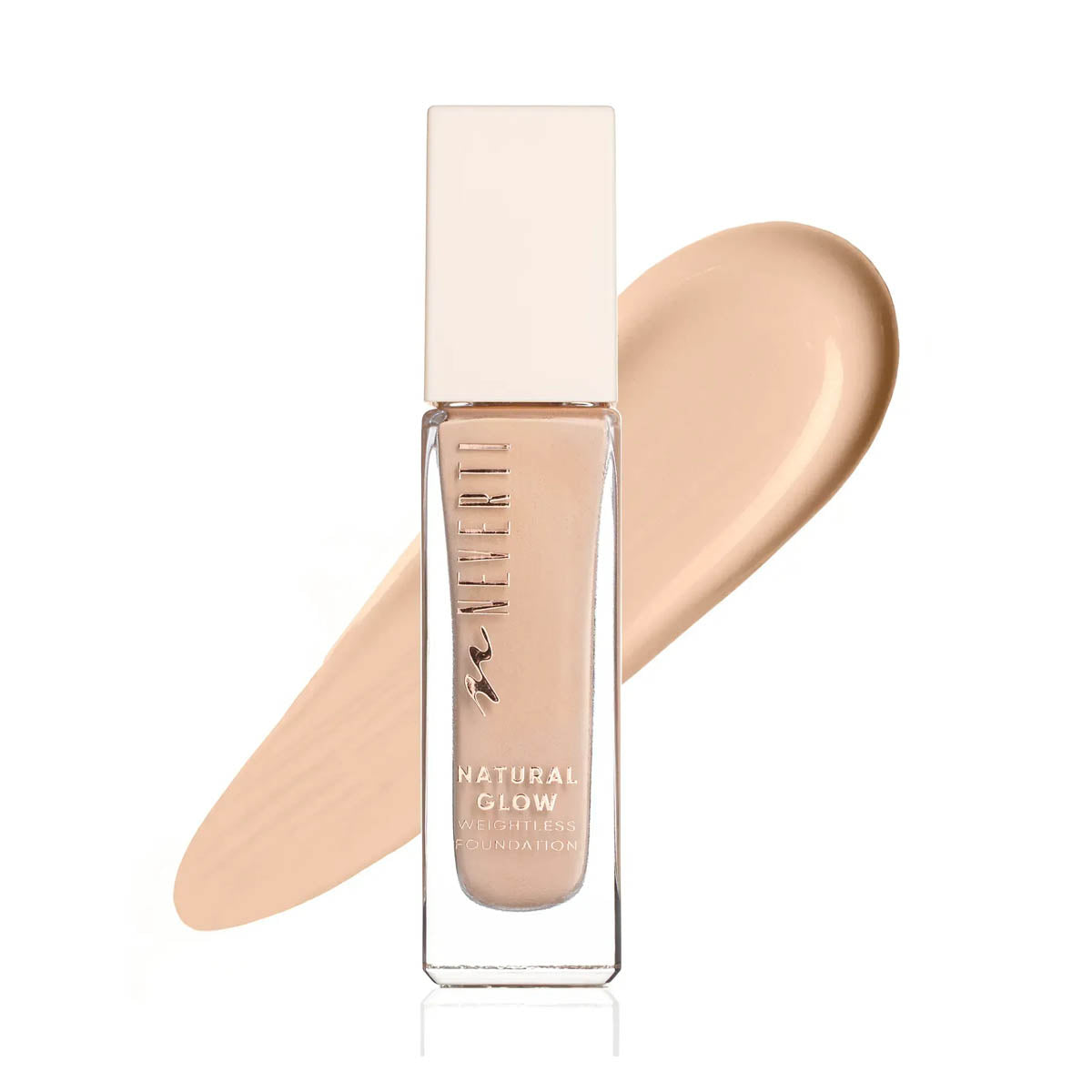 Neverti Natural Glow Foundation is a foundation that feels as light as air while giving your skin a radiant, natural glow. Our Natural Glow Weightless Foundation is designed to provide seamless, breathable coverage that evens skin tone without masking your natural beauty. The ultra-light formula glides on effortlessly, delivering a luminous finish that lasts all day. Infused with hydrating ingredients, this foundation keeps your skin nourished and glowing from within, without ever feeling heavy or cakey. Our foundation is vegan and gluten-free, delivering a clean, long-lasting formula that provides shooting and blue light protection. Enriched with vitamin E, it offers 24 hour moisturizing and restructuring benefits, while being dermatologically tested to ensure anti-aging effects for a luminous, radiant complexion.