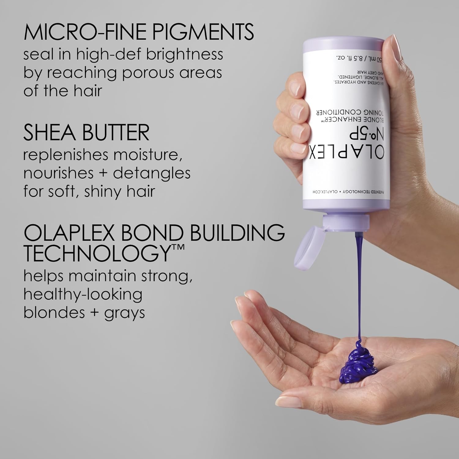 A purple conditioner for root-to-tip toning and brightness + patented OLAPLEX Bond Building Technology™ for strong, healthy-looking blondes and grays.