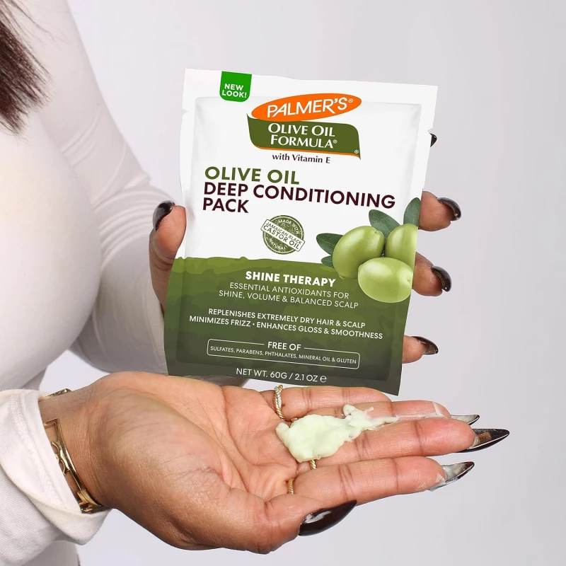 Palmer’s Olive Oil Formula Deep Conditioner, a super creamy intensive conditioner, is loaded with Extra Virgin Olive Oil and fortified with our exclusive Botanical Scalp Complex blend to provide essential vitamins and minerals to dry, damaged hair, penetrate deep to restore moisture and shine and strengthen weak brittle hair, helping it grow longer and minimizing breakage while leaving hair silky and healthy.