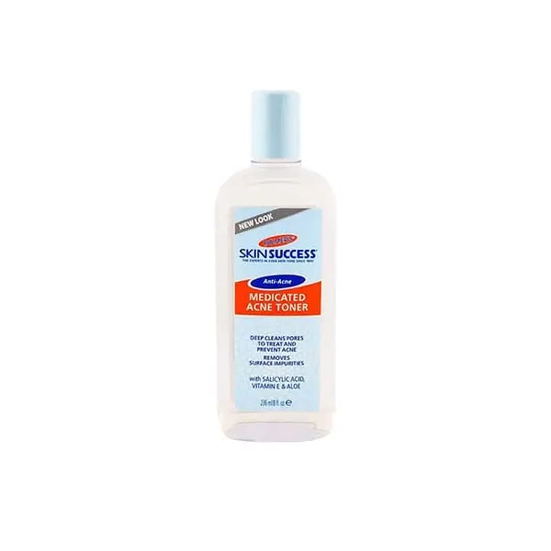 Description Description: Palmer’s Skin Success Medicated Acne Toner, formulated with 0.5% Salicylic Acid, Vitamin E, and Aloe, provides deep cleansing and helps unclog pores, addressing acne, blemishes, and blackheads. Vitamin E: A powerful antioxidant that improves the appearance of scars, stretch marks, and skin imperfections, leading to a more even and toned complexion. Aloe: Rich in essential fatty acids, vitamins, and minerals, this natural emollient calms, soothes, and hydrates dry, sensitive skin. Palmer’s Skin Success Medicated Acne Toner effectively deep cleans and unclogs pores to help prevent and treat acne and related skin issues. HOW TO USE : Clean skin thoroughly before applying medication. Moisten cotton ball and cover the entire affected area with a thin layer one or three times daily. Because excessive drying of the skin may occur start with one application daily.