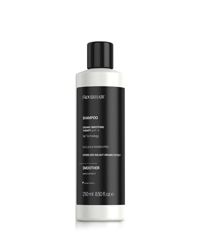 Description”: “Our Roverhair Smoother Organic Smoothing Therapy Shampoo is a gentle, nourishing formula designed to help tame dry, tangled hair. Made with organic ingredients, it’s perfect for most hair types, including color-treated hair.”, “Benefits”: [“Hydrates and moisturizes the hair”, “Helps reduce frizz and flyaways”, “Gentle enough for daily use”], “How to Use”: “Massage into damp hair, lather, and rinse. For best results, use once or twice a week as needed.”, “Safety Note”: “If you have sensitive skin, do a patch test before using on your hair. If irritation occurs, discontinue use.