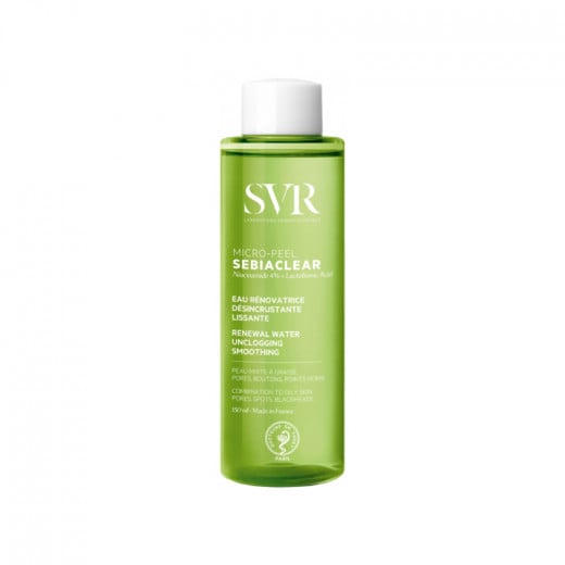 SVR Sebiaclear Micro-Peel 150ml is renovating, smoothing and highly concentrated descaling water, that purifies, unclogs the pores and eliminates the imperfections without drying out the skin.
