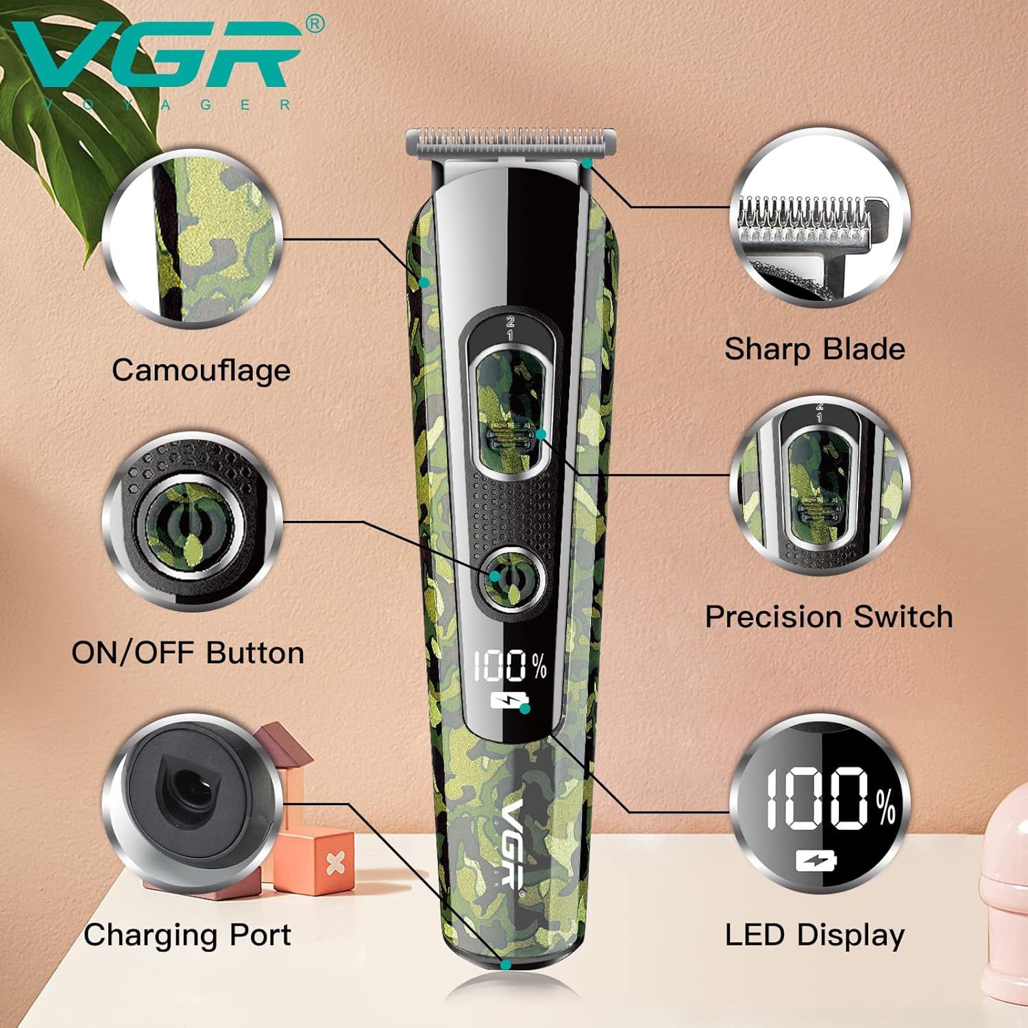 VGR V-271 Camouflage Professional Rechargeable Hair Clipper Runtime: 150 min Trimmer for Men